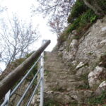 そして石の階段がいくか続き、最後の最後には・・・高所恐怖症の人が山道まで頑張れたとしても、これは辛いかも・・・の、急傾斜でスケスケの階段です。