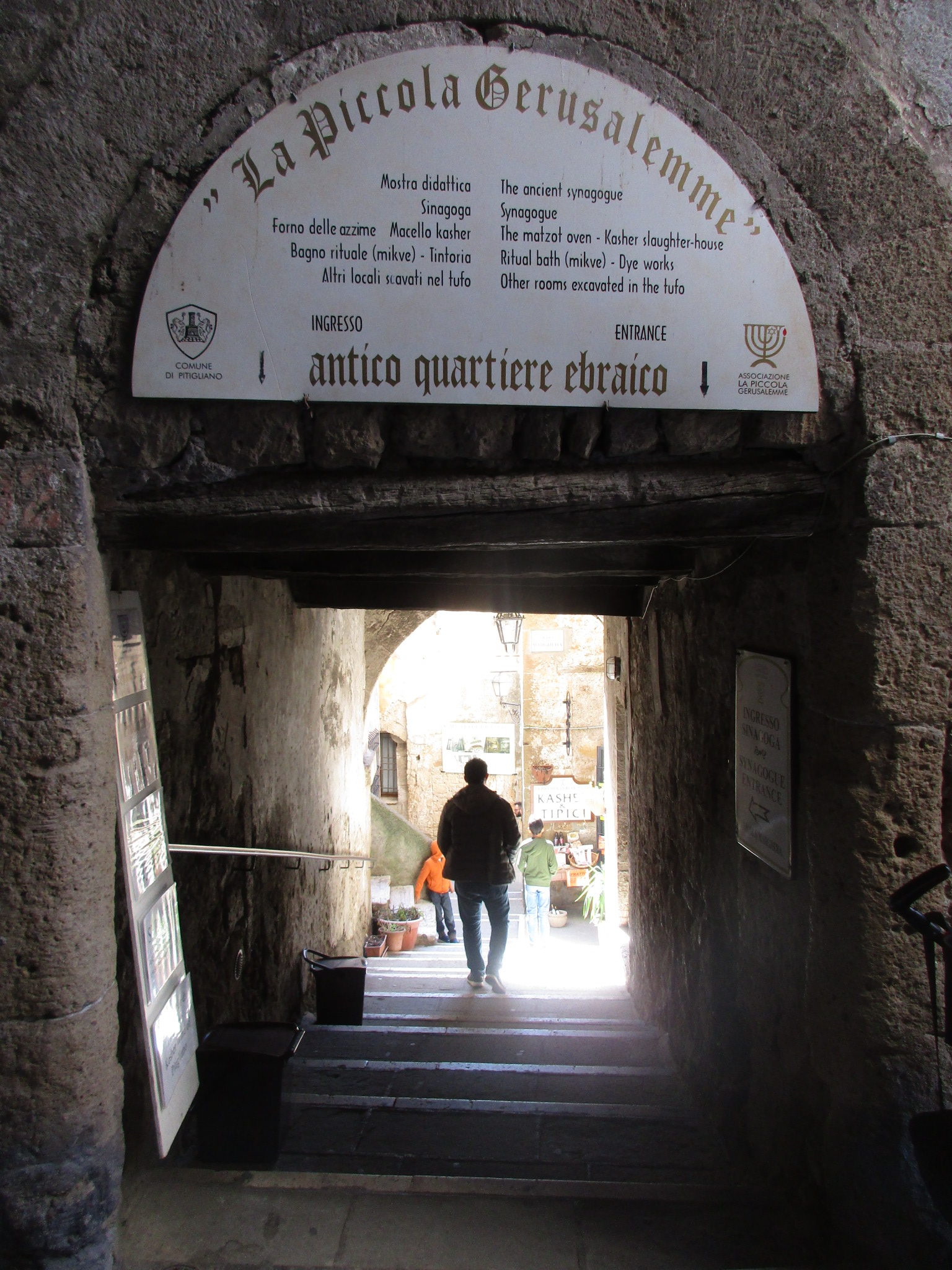 事の始まりは1556年、この地を治めていたニッコロ・オルシー二が、ユダヤ人墓地を作るための土地をお抱えの医者だったユダヤ人医師に与えたことから。その後1598年にはシナゴーグが建設され、オルシー二家よりトスカーナ大公・メディチ家にピティリアーノの統治権が移った後もユダヤ人コミュニティは拡大を続け、1622年、メディチ家によってゲットーが建設されます。それは、村が建設された凝灰岩を掘ってつくられていきました。一時はピティリア―ノの人口の20%ほどを占めていたユダヤ人ですが、イタリア統一後に流出が始まり、また、第二次世界大戦中は相次いで捕らえられてゆくユダヤ人在住者たち。そんな時もピティリアーノの人々はユダヤ人たちをかくまい、コミュニティがなくなった今もかつてのコミュニティをそのまま残し、今に伝えるミュージアムとしているのです。