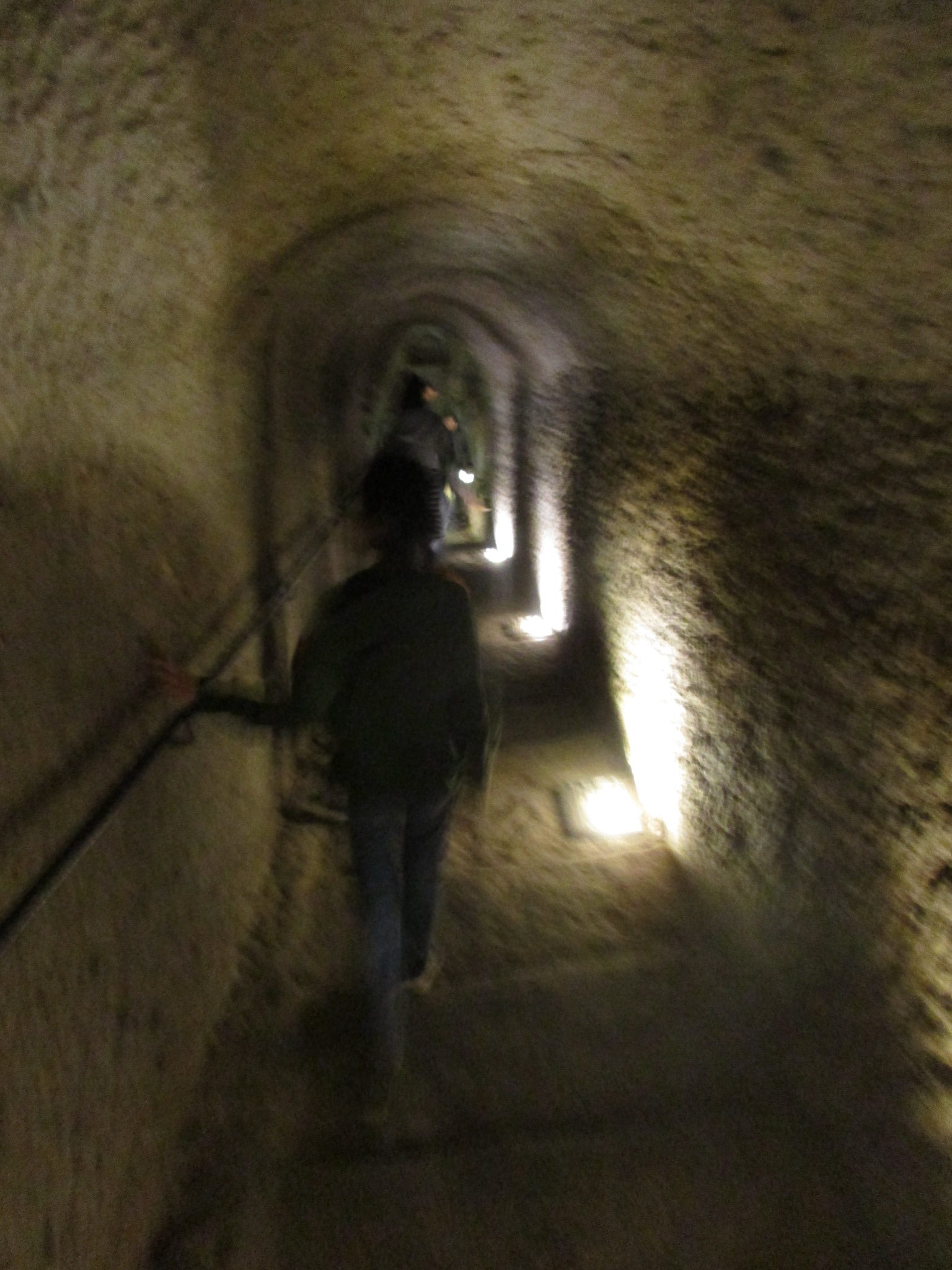 村の南側のメインストリート・ズッカレッリ通りを中ほどまで行くと、左側にあるのがこの Piccola Gerusalemme。アーチをくぐって階段を降り、右の扉を入ったところがミュージアムの入り口です。入って左側がチケット売り場で、あとはパンフレットを見ながら番号通りに進むだけ。