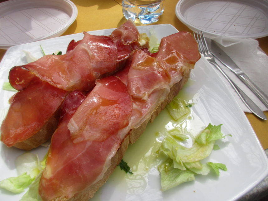 記事にするほどでも・・・と思いつつ、あまりに良かったもので・・・モンテメラーノでのランチは、平日の昼間だったせいか?旧市街内のレストラン・バールはことごとく閉まっており、門の外で唯一開いていたバールでパニーノ食べようか、と入りました。ショーケースにはラップでくるんだパニーノが数個。なんかそそるものがないけど、ま、エエか・・・と思ったその時!私の横を通りすぎるおっちゃんが持ってたん、あれ何や―――!?と言うことで、同じものを頼みました。