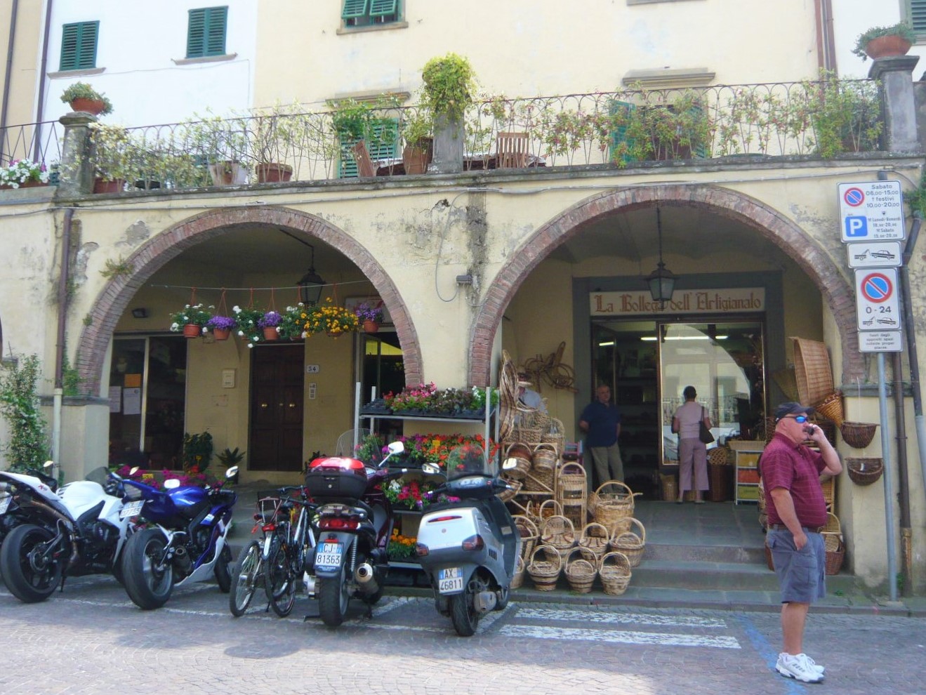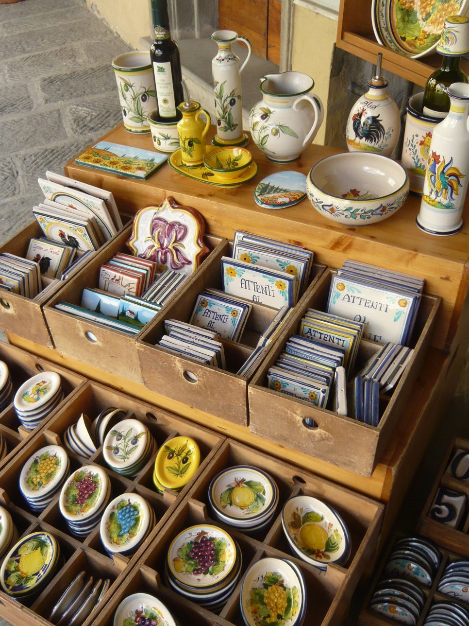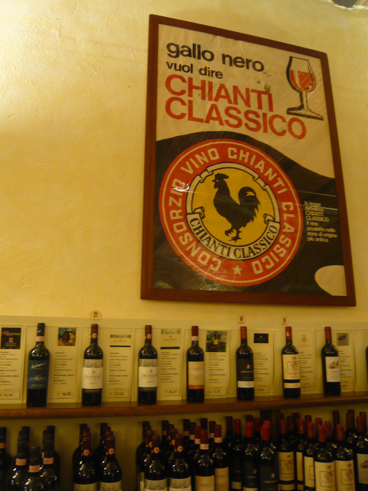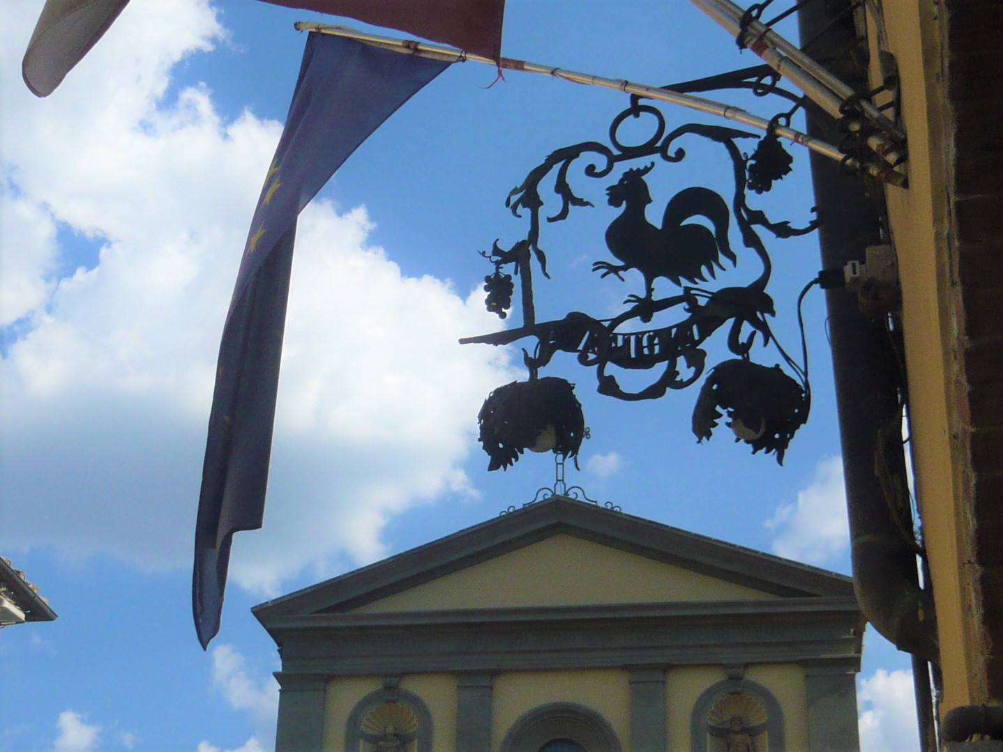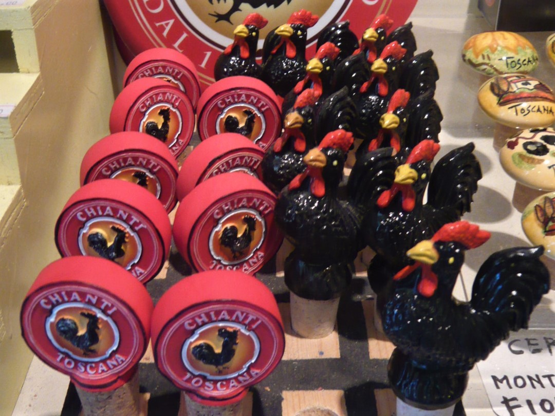 同じ通りで少し先にあるのが、キアンティグッズのお店、黒鶏をモチーフにしたいろんな雑貨が売っているので、キアンティ土産には最適のお店。Tシャツや、サイクリング用ユニフォームなどもあります。