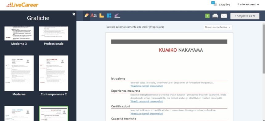 先週、イタリア語で履歴書が必要になりました。昔ワードで作った覚えはあるのでパソコン内を探すと・・・あまりに古く?ファイルがもう開かない。ま、これをきっかけに新しく作ればいいわ、と思ったものの、いわゆる「定型」であんのかな?と思って検索して出てきたのが、この LiveCareer 。履歴書ビルダーというのがあり、そこから定型モデル12種類から選択、入れたい項目:学歴、職歴、資格、の追加や削除が行え、オンラインで履歴書が出来上がります。