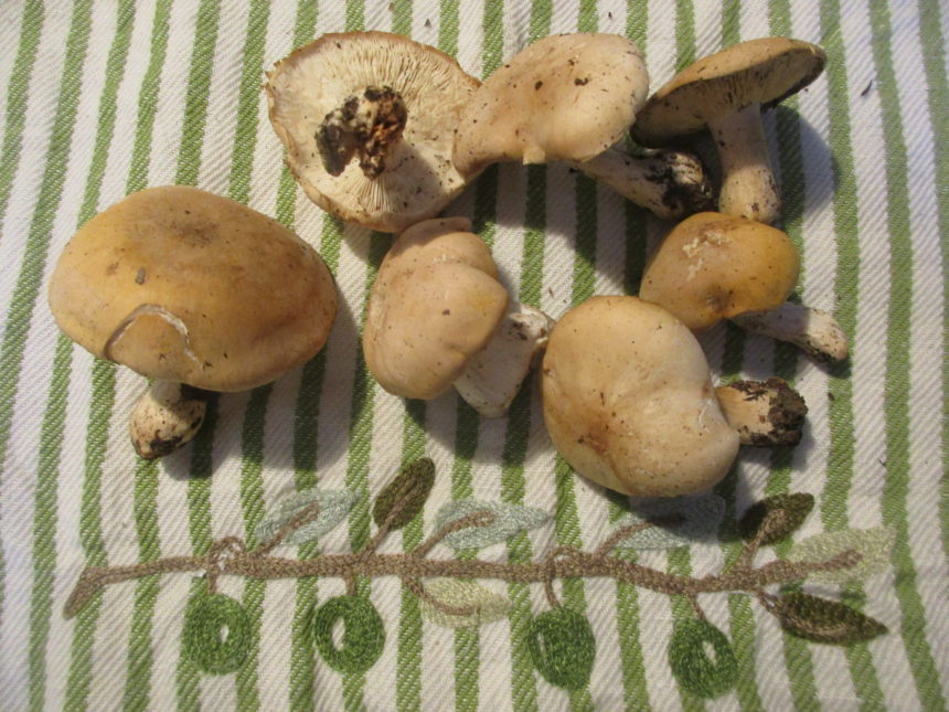 このきのこの存在もおらが村に越して来てから知ったのですが、トスカーナを始めとする中部の田舎ではポピュラーな春のキノコ。学術名はCalocybe gambosaとですが、他の呼び名としては「サン・ジョルジョのキノコ」~この聖人の日の4月23日に出てくるからだそう。ただし、期間も短く人気も高いので、キノコ狩りたちの熱い争奪戦も繰り広げられ?、そう簡単にはお目にかかることはできません。もちろんスーパーには売ってないし、この季節だけプルニョーリを出すレストランがわずか、またはサグラと呼ばれる田舎町の食祭りに出てくるくらいなのです。更に、名前の通りスローという棘のある低木(Prugnolo)の近くに生えるそうで、採るのも一苦労な、の、に・・・!