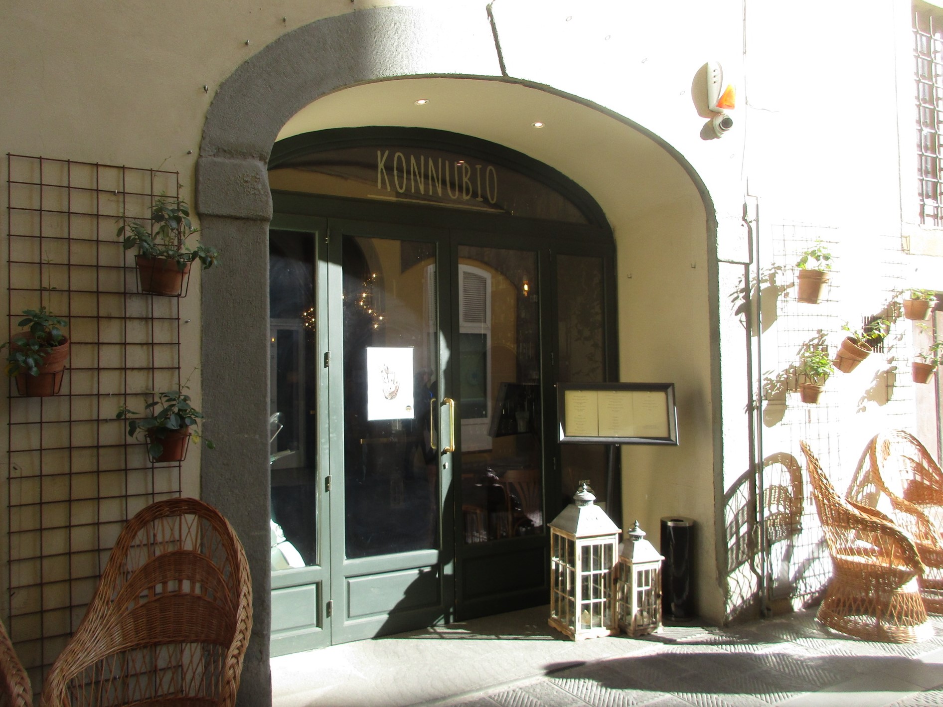 駅、ドゥオモ、サン・ロレンツォ教会からほど近い、便利な立地にあるKONNUBIO。数年前にオープンした、オーガニック食材やビーガンメニューも豊富なレストランです。レストランと書きましたが、朝はブレックファスト・ブッフェ、昼はランチ、夕方はアペリティフ・タイム、夜はディナー、と、時間帯ごとに役割を変えています。外観はシンプルですが、中はシックでおしゃれな空間。お料理もコテコテトスカーナ料理でなく、見た目も美しい創作料理。単価は決して安くないのですが、ランチタイムはほとんどのお料理がハーフポーションで選べるので、夜よりは手軽にリッチな気分に浸ることができます。