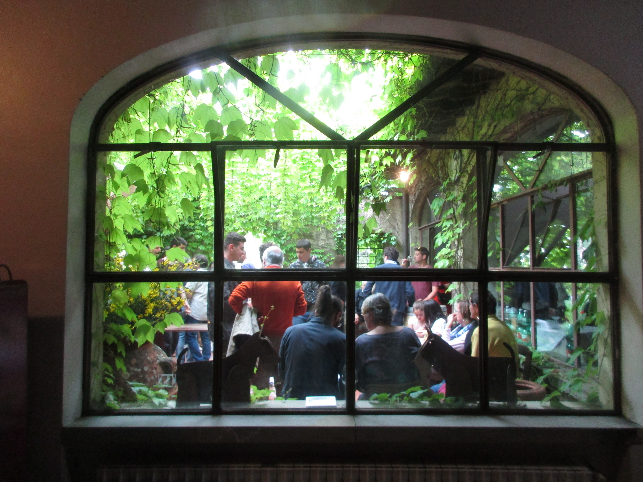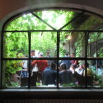 ワイナリー見学の最初は、ブドウ畑から。今では大ブームのオーガニックワインですが、ここはなんと1998年から完全オーガニック栽培の農家。畑で土壌やブドウの説明を聞いた後、こんな素敵な中庭を通ってセラーに入ります(訪れた日はイベントで音楽ライブをっていました)。